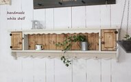 アンティークホワイト風仕上げの壁掛けカントリーロングシェルフです。