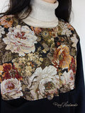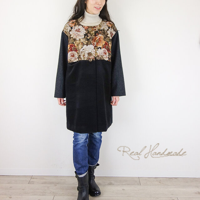 暖かなウールブラックとウールモッサチャコールに大変美しいゴブラン織りフラワーを合わせて