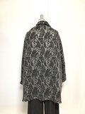 グレーのニット生地にグレーの糸が混ざった黒いフロッキープリントのレースが貼り合わせてあります。