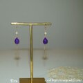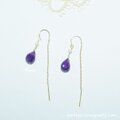 小さくて質の良い淡水パールをピアスに下げ、その下にスギライトを下げました。