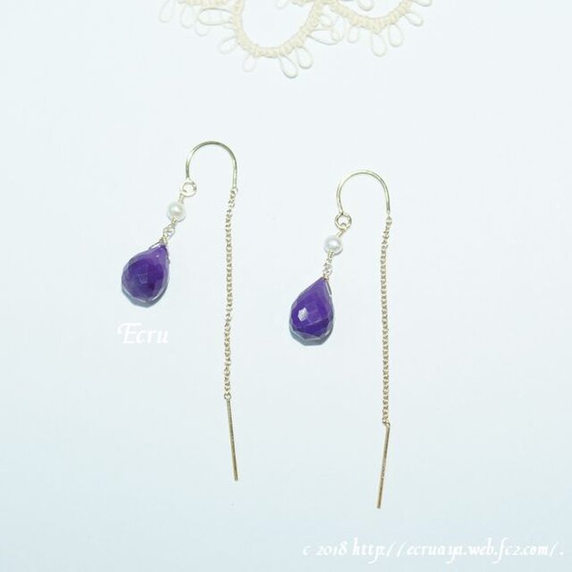 素材:最上級スギライト ドロップブリオレットカット 宝石質淡水パールAAA ラウンド、その他すべて14kgf