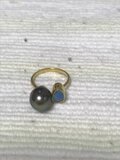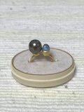 タヒチ産ブラックパールとオーストラリア、オパールダブレットのコンビネーション、フリーサイズリング。