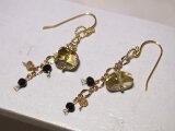 イエローとブラックの石を散りばめたチャームをつけたピアスです。