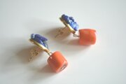 ラピスラズリ(blue)と、オレンジ色の珊瑚を繋いで、揺れ感が可愛らしいピアスに仕上がりました☆