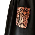 左右の裾とポケットにいろいろな銘仙をあしらった