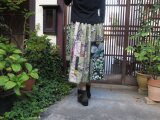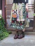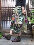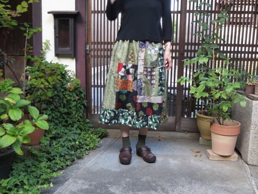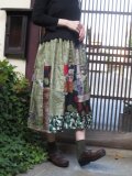 銘仙リメイク☆薄緑に黒&紫&緑系色々粋スカート♪76㎝丈