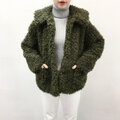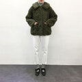 ★en-en・ソフトカーリーループ・エコファー襟付きジャケット・カーキー