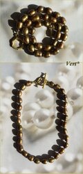 Vert* オリーブゴールド縞入り大粒ライス淡水パールグリフィンショートネックレス
