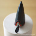 ファスナーに近い口元と引手はファスナー色に合わせて赤い糸を使用し、それ以外は本体と共色の黒色の糸を使用したツートンカラーです。