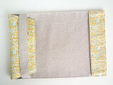 リバティの人気生地、ジェニーズリボンズ Jenny's Ribbons(イエロー)とハーフリネンの生地でビジネス書サイズのブックカバーを作りました。