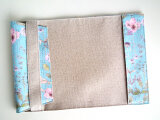 リバティの人気生地、イルマ Irma(水色とピンク)とハーフリネンの生地でビジネス書サイズ(四六判)のブックカバーを作りました。