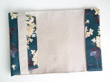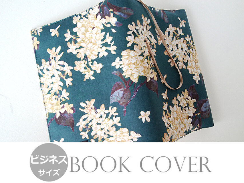 リバティの人気生地、アーカイブライラック Archive Lilac(グリーン)とハーフリネンの生地でビジネス書サイズのブックカバーを作りました。