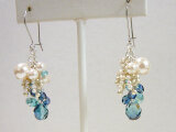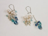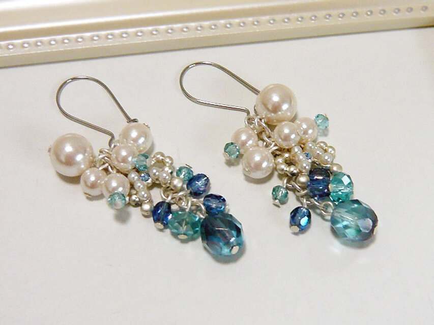 ブルー系ガラスとクリームカラーのパールに、白いマットシルバーを合わせました。