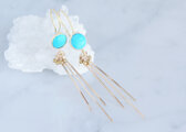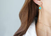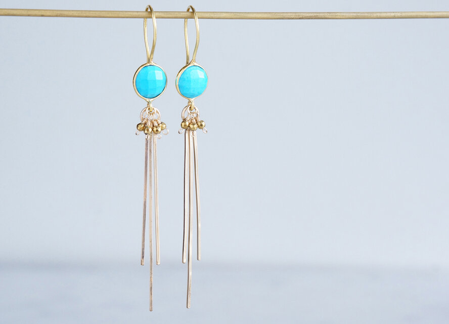 Long Dangle Earrings,Gemstone Turquoise -14KGF Fringe -