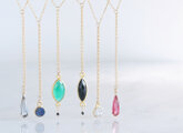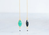 【Gold Vermeil/Gemstone】14KGF Lariat Y Choker Necklace-Marquise Black Onyx/Marquise Green Onyx-