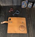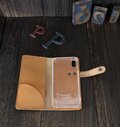 ハリのあるキャメル革にぷっくりなニコちゃんの iPhone XS MAXケースです。