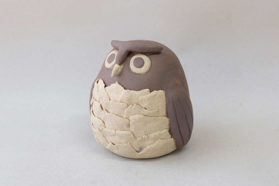 *釉薬や絵の具を使わない、焼き締めの陶器のフクロウです。