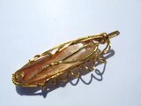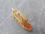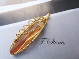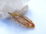 深みのある黄金色の、ゴールデンヒーラーレムリアンクォーツのタンブルを、ゴールドのワイヤーで巻きました。細見ですが、形が良く、バランスの取れた美しいタンブルです。