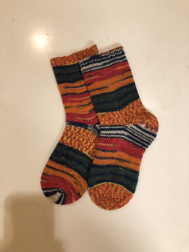 久しぶりに購入しました。 手編みの靴下は、柔らかくて肌触りが気持ち良いです。洗濯しても縮まないので、扱いも楽です。この形は初めてですが、これからの季節に活躍してくれるでしょう。有難うございました。