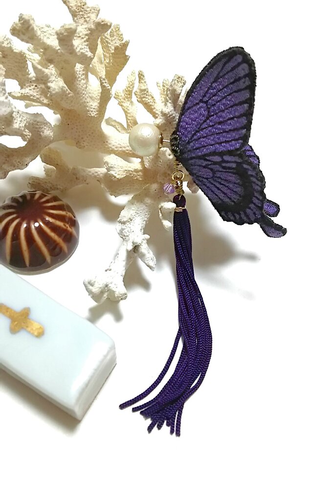 色はとても綺麗な紫で、生地の質感もあるので蝶のリアルさがお勧めです☆