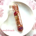 赤いバラのドライフラワーと金色ブリオンが華やかです。全体的に神秘的な感じです。