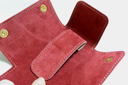 本革のピアスケース・エナメル牛革・ベージュ×レッド