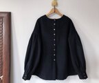 柔らかいウール100%クロスやや厚、毛並方向感、生地でブラウスを作りました。