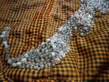 可愛いオレンジのチェック柄に刺繍とビーズで彩りました。