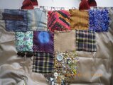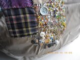 落ち着いたベージュ系のベースに、小さいパッチワークとビーズで彩りました。