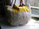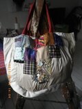ミシンを踏まず、手縫いで仕上げたバッグです。
