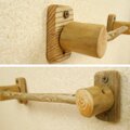 よく見ると、壁に取り付ける流木の木目が両サイドで違っていたり、バーとなる流木は木目の柄がおもしろかったり、バーを支える流木は年輪がくるくるしていたり。