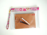 リバティの人気生地(ラミネートつや無)、Small Susanna スモールスザンナ(マゼンタピンク)で中身が見えるクリアポーチを作りました。