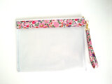 リバティの人気生地(ラミネートつや無)、ベッツィ Betsy (ピンク)で開けなくても中身が見えるクリアポーチを作りました。