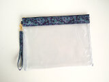 リバティの人気生地(ラミネートつや無)、Wiltshire ウィルトシャー(ネイビー)で開けなくても中身が見えるクリアポーチを作りました。