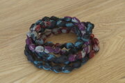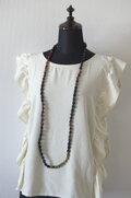 ウッドビーズを着物地にひとつひとつくるんだラッピングネックレス。