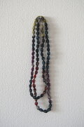 黒ベースに赤、黄、水色が入り、グラデーションがとても美しいネックレスです。