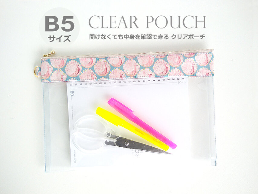 【注意】クリア生地部分に小さな傷、折れがある場合もございます。縫い終わりに生地を返す工程で傷や折れが出来てしまう場合があるようです。予めご了承下さいませ。