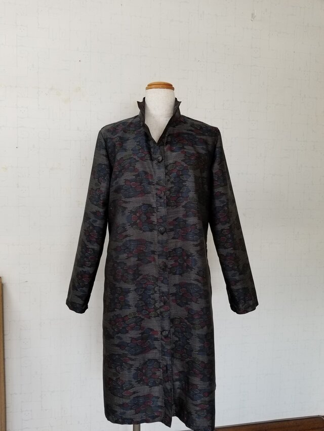 石畳模様織り出し本場泥大島紬(絹)からコートワンピースを作りました。