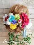 結婚式の前撮り用にお願いしました。 無事に前撮りが完了したので、感想書かせて頂きます。 自分では花の色合いや種類を決めることができず、色打掛の写真を元に作って頂きました。 完成品は依頼した通り、上品で存在感のある綺麗な花飾りでした。 実際に色打掛を着てヘアメイクさんに付けてもらったら、着物とピッタリ! 大大大満足です! お願いして本当に良かったです。 ありがとうございました。