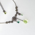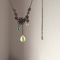 アンティーク調カラーの金具を繊細に組んだ「花」から滴り落ちるように垂れ