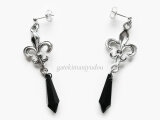 百合の紋章の下でカット入りで雫型の黒いアクリルビーズが揺れるピアスです。