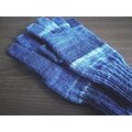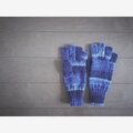 ブルーかの段染め糸で編んだ手袋です。薄手で指先がほんの少しでるので作業しやすいです。サイズ レディースS~M