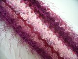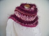 様々なファンシーヤーンを組み合わせて編んだストールです。