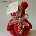 【現品限り】こぎん刺しテディベア「総刺しこぎんクマ:Heart&rose」