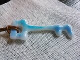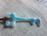 陶器のような白いガラスに2種類のブルーのパウダーガラスで色付けし、優しい雰囲気に仕上げています。