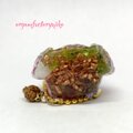 縁起物のフクロウにポジティブ太陽石のペリドットと愛情、癒しのアメトリンを入れました。