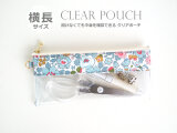 リバティの人気生地、(ビニールコーティングつや無)、 ベッツィ Betsy (グレー)で開けなくても中身が見える便利なクリアポーチ(横長)を作りました。