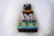 普通サイズの帽子と同じ編み方でつくった