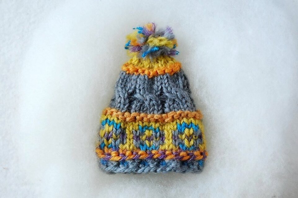 普通サイズの帽子と同じ編み方でつくった