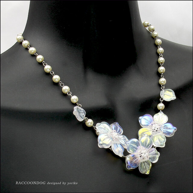 ビーズ,ビーズアクセサリー,ビーズアクセ,ビーズネックレス,ネックレス,パール,スワロフスキー,花,チェコビーズ